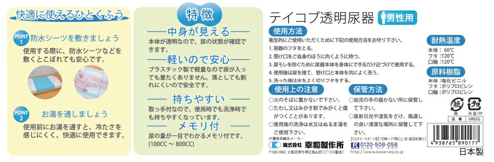 備考:テイコブ透明尿器 幸和製作所 男性用 】