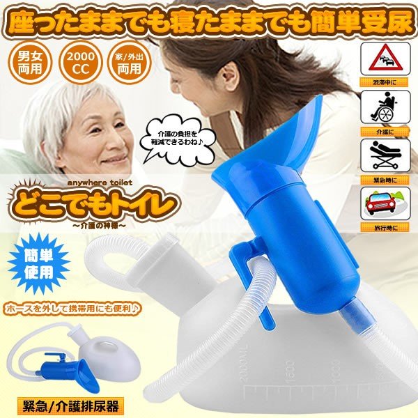 商品名 : 介護用 車用 どこでもトイレ 尿瓶 排尿器 2000cc 大容量 トイレ 緊急 男女両用 受尿器付き 病院 渋滞 旅行