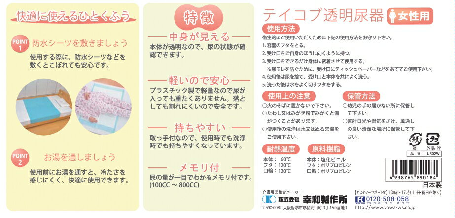 備考:【 テイコブ透明尿器 幸和製作所 女性用 】