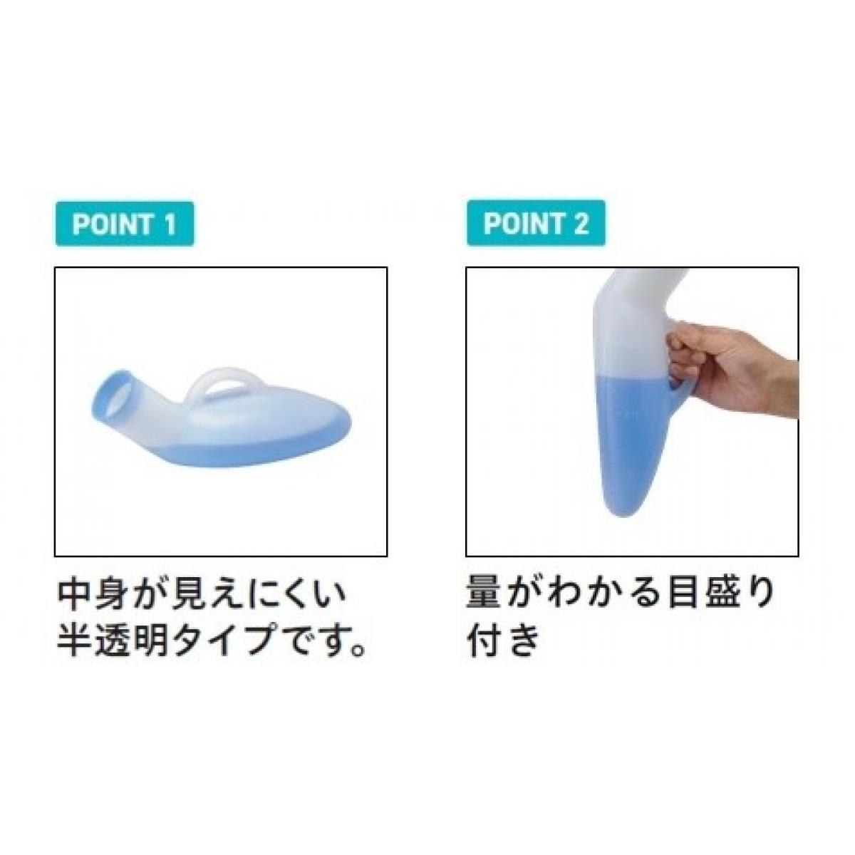 量がわかる目盛付き、中身が見えにくい半透明の男性用尿器。 【製品仕様】 寸法:幅295×奥行107×高さ118mm 重量:98g 材質 本体:ポリエチレン フタ/口輪:ポリプロピレン 容量:800cc 耐熱温度 本体:70度 フタ/口輪:120度 <4938765890153> 【ご購入前にご確認ください】※沖縄・離島、その他一部地域からのご注文はお受けできません。システムの都合上ご注文は可能ですが、自動キャンセルになりますのでご了承ください。※当店ではのし・ラッピング梱包は承っておりません。※お客様都合でのキャンセル及び返品・交換は受け付けておりません。あらかじめご了承の上、ご注文ください。※商品の仕様・パッケージや原産国・原産地などは、メーカーの都合により予告なく変更される場合がございます。最新の情報につきましては、メーカーにご確認くださいますようお願いいたします。