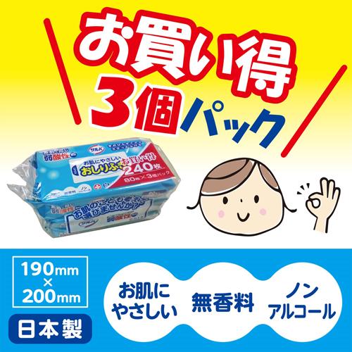 商品名 : サルバ お肌にやさしいおしりふき(3個パック×15セット(1パック80枚入))