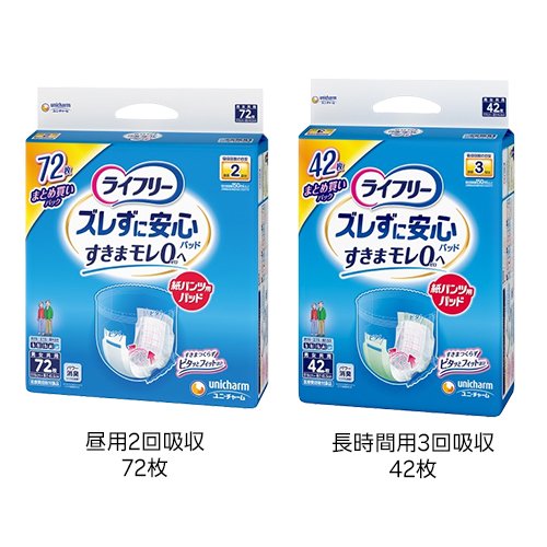 お店TOP>介護>おむつ・失禁対策・トイレ用品>尿とりパッド>尿とりパッド パンツ用>ライフリー ズレずに安心 紙パンツ専用尿とりパッド (1袋)【ライフリー ズレずに安心 紙パンツ専用尿とりパッドの商品詳細】●紙パンツの中にキレイに収まる長さ・幅専用形状なので、ぴったりフィットしモレ安心●前後のズレ止めテープが紙パンツにぴったりくっついて、上げ下げしてもズレない2024年12月19日 4903111514151 4903111514434 4903111544202 4903111544912 削除2025年6月6日 4903111584277 リニューアル2025年10月9日 4903111525454 4903111584277 削除、4903111022069 4903111989485 追加2025年10月20日 4903111544141 リニューアル2025年11月12日 4903111989485 削除、4903111600366 追加2025年12月25日 4903111544202 リニューアル【規格概要】★昼用2回吸収72枚(素材)表面材:ポリオレフィン不織布/吸水材:綿状パルプ、吸水紙、高分子吸水材/防水材:ポリオレフィンフィルム/止着材:ポリオレフィン系合成樹脂/伸縮材:ポリウレタン/結合材:スチレン系エラストマー合成樹脂(外装材)ポリエチレン★長時間用3回吸収42枚(素材)表面材:ポリオレフィン不織布/吸水材:綿状パルプ、吸水紙、高分子吸水材/防水材:ポリオレフィンフィルム/止着材:ポリオレフィン系合成樹脂/伸縮材:ポリウレタン/結合材:スチレン系エラストマー合成樹脂(外装材)ポリエチレン★うす型昼用2回吸収68枚(素材)表面材:ポリオレフィン不織布/吸水材:綿状パルプ、吸水紙、高分子吸水材/防水材:ポリオレフィンフィルム/止着材:ポリオレフィン系合成樹脂/伸縮材:ポリウレタン/結合材:スチレン系エラストマー合成樹脂(外装材)ポリエチレン★うす型昼用4回吸収38枚(素材)表面材:ポリオレフィン・ポリエステル不織布/吸水材:綿状パルプ、吸水紙、高分子吸水材/防水材:ポリオレフィンフィルム/止着材:ポリオレフィン系合成樹脂/伸縮材:ポリウレタン/結合材:スチレン系エラストマー合成樹脂(外装材)ポリエチレン【注意事項】・汚れたパッドは早くとりかえてください。・テープは直接お肌につけないでください。・誤って口に入れたり、のどにつまらせることのないよう、保管場所に注意し、使用後はすぐに処理してください。【原産国】日本【ブランド】ライフリー 中度インナー【発売元、製造元、輸入元又は販売元】ユニ・チャーム商品に関するお電話でのお問合せは、下記までお願いいたします。受付時間9:30-17:00(月-金曜日、祝日除く)ベビー用品:0120-192-862生理用品:0120-423-001軽失禁・介護用品(ライフリー):0120-041-062生活用品(化粧パフ・一般ウェットティッシュ・お掃除用品など):0120-573-001衛生用品(マスク):0120-011-529ペットケア用品:0120-810-539リニューアルに伴い、パッケージ・内容等予告なく変更する場合がございます。予めご了承ください。ユニ・チャーム東京都港区三田3-5-19住友不動産三田ガーデンタワー広告文責:楽天グループ株式会社電話:050-5577-5042[大人用紙おむつ 失禁用品/ブランド:ライフリー 中度インナー/]