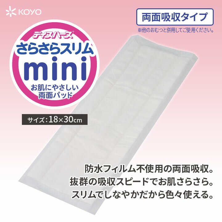 商品名 両面吸収パッド さらさらミニ 48枚 材質 表面材:ポリオレフィン系不織布 吸水材:綿状パルプ・高分子吸収材 結合材:スチレン系エラストマー合成樹脂 外装材:ポリエチレン サイズ(約) 幅18×長30cm 吸水量目安(約) 1回 ※1回の排尿量を150mlとしています。(メーカー測定法による)個人差がありますので、あくまでも目安としてお考えください。 生産国 日本製 ご注意 ※おむつ・パッドと併用してお使いください。 ※画面上と実物とでは多少色が異なる場合がありますので、ご了承ください。 関連ワード 両面吸収 補助パッド 失禁パッド 大人用紙おむつ 介護用品 男女兼用 オムツ併用 パッド併用 尿もれ 尿漏れ防止 吸収スピード 通気性 お肌サラサラ 折れる 丸める すき間をうめる 伝い漏れ 男性 女性 背中モレ対策 吸収量を増やす Dispars ディスパース KOYO 光洋 ▼ 3,980円以上で送料無料!価格で商品を探す ▼ 送料無料の商品 》 〜1,500円の商品 》 1,501〜2,000円 》 2,001〜3,000円 》 3,001〜4,000円 》 4,001〜5,000円 》 ▼ インフォメーション ▼ 店舗TOPへ お支払い方法 配送・送料 返品・交換 お問い合わせ 会社概要両面吸収パッド さらさらミニ 48枚 両面吸収パッドシリーズ さらさらスリム45枚 さらさらミニ48枚