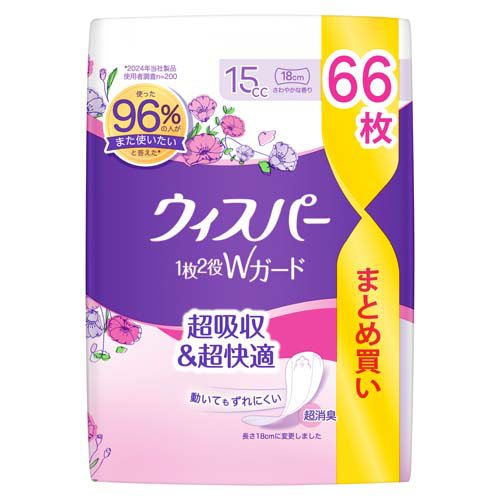 商品名 : ウィスパー 1枚2役Wガード 15cc 女性用 吸水ケア 大容量(66枚入*2袋セット)