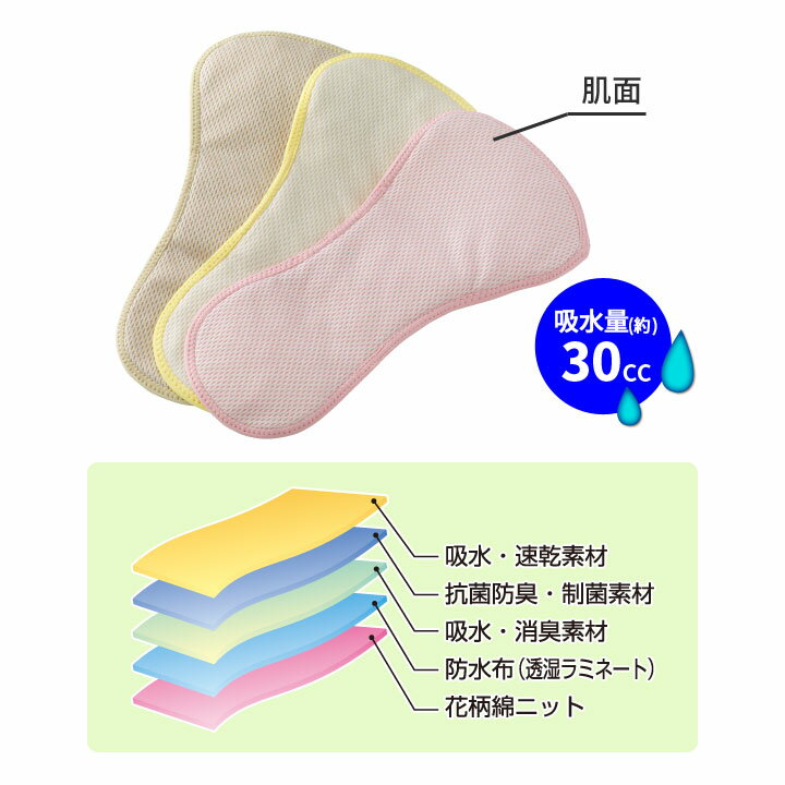 商品名 : 花柄さわやかケアサポートパッドW 3色組 軽失禁 レディース 婦人 失禁対策 吸水量約30cc 尿モレ パッド 尿もれ 洗える エコ スリムタイプ