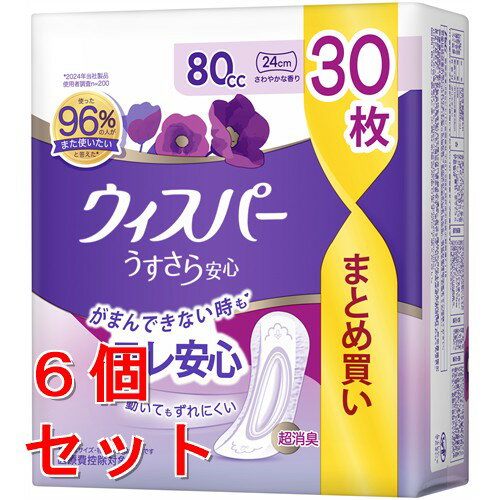 《セット販売》 ウィスパー うすさら安心 80cc 30枚×6個セット (女性用 吸水ケア 尿もれパッド)