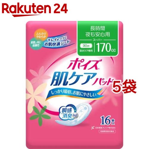 ポイズ 肌ケアパッド 吸水ナプキン 長時間・夜も安心用(スーパー) 170cc(16枚入*5袋セット)