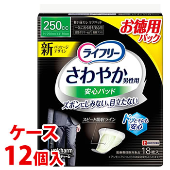 《ケース》 ユニチャーム ライフリー さわやか男性用安心パッド 250cc (18枚)×12個 一気に出る時も安心用 軽度失禁パッド