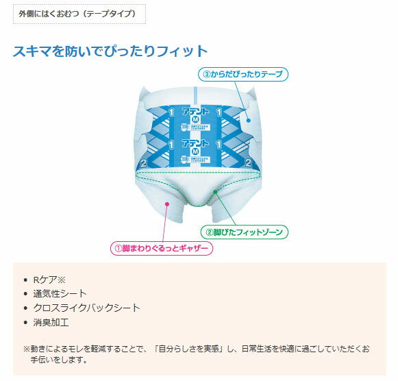 商品名 : アテント Rケア スーパーフィットテープ M 773009 22枚 大王製紙 介護用品