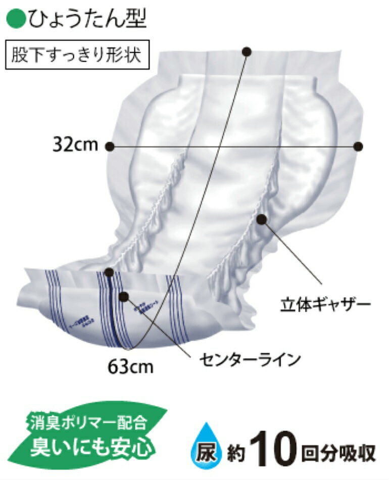 【入数】120枚/ケース(30枚×4袋入)【製品サイズ/形状】32cm巾×63cm長/ひょうたん型【個包装袋サイズ/重量】245mm高×395mm巾×190mm奥行/2,920g【梱包ケースサイズ/重量】255mm高×785mm巾×380mm奥行/12.6kg【素材】< 表面材 >ポリオレフィン不織布< 吸収材 >綿状パルプ/吸収紙/高分子吸収材< 防水材 >ポリオレフィンフィルム<伸縮材>ポリウレタン系< 結合材 >スチレン系エラストマーなど【吸収回数の目安】排尿10回分(約1,500ml)【その他特徴】< 立体ギャザー >で横モレガード< クロスライク >布感覚・通気性(透湿性)のバックシートでオムツの中の湿気をドンドン外へ逃がします< 二層構造の吸収マット >肌から遠い下層から尿を閉じ込め、ウェットバック(逆戻り)も少なく、長時間交換しなくてもお肌サラサラ、ムレ・カブレを防止します。< 消臭効果 >高性能吸収ポリマーがいやな臭いを閉じ込めます。安心・安全の日本製ブランド【マーヤ】の<10回分 超吸収パッド>です。多くの病院や介護施設で夜間用や長時間用としてしている業務仕様です。いままでのパッドではモレれてしまう方。パッド使用枚数(交換回数)を減らしたい方。など当店自信の高性能パッドを是非お試しください。