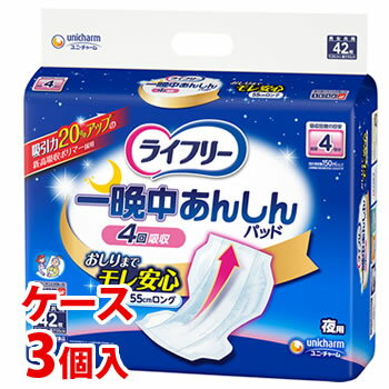 《ケース》 ユニチャーム ライフリー 一晩中あんしん尿とりパッド 夜用 排尿4回分 (42枚)×3個 男女共用