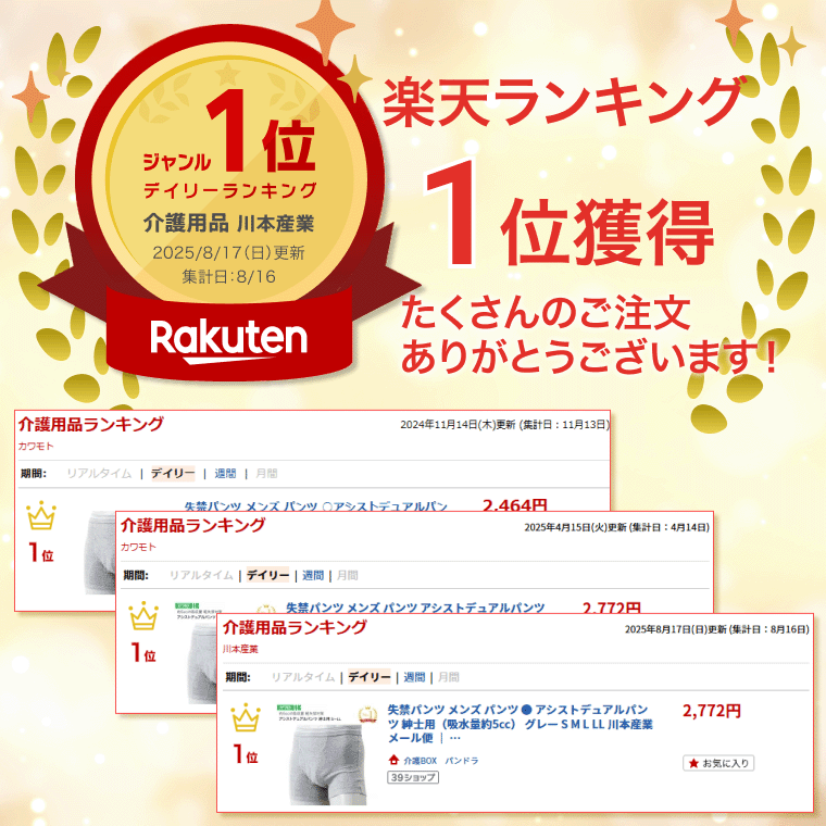 ※メーカー廃盤となりました。在庫限りとなりますので、万一品切れの際はご容赦下さい。 ●サイズ(ウエスト)/S:68〜76cm、M:76〜84cm、L:84〜94cm、LL:94〜104cm●素材/表:綿100%●吸水量目安/約5cc●生産国/日本●洗濯機可(ネット使用)●脱水機可●乾燥機不可・トイレの後に気になるズボンやスラックスへの滲み出し汚れを解決します。 (メール便での配送になります。) ※メール便はポスト投函のため、受取の証明・保証がございません。ポスト投函までの追跡は可能ですが、ポスト等には充分ご注意していだけますようお願いいたします。 ※メール便は、配達時間帯の指定ができません。時間指定等が必要な場合、宅配便での配送となります。その場合別途お問合せ下さい。 ※メール便配送のため、簡易包装対象商品です。厚み制限のため、パッケージ箱を潰して中身を出し発送させて頂く場合がございます。商品によっては、折りシワ、型崩れが起きる場合がございますことをあらかじめご容赦下さい。 【川本産業】 【当店では以下のような商品を取り扱っております。】 [食事関連] 介護食 健康食品 栄養補助食品 ハイカロリー 区分1 区分2 区分3 区分4 容易にかめる 歯ぐきでつぶせる 舌でつぶせる かまなくてよい ドリンク お箸 スプーン フォーク グリップ カフ 食器類 すべり止めシート カップ吸い飲み器 調理器具 オーブナー ロ腔ケア用品 食事用エプロン 飲料 飲み物 栄養補助ゼリー ゼリー飲料 自助具 カトラリー コップ お皿 オーラルケア 歯ブラシ 歯ぶらし 歯磨き 入れ歯洗浄 食事用前掛け [入浴関連] シャワーチェア 浴槽台 浴槽手すり 浴槽ポード バスリフト バスマット バスシート シャワーキャリー 入浴用 介助ベルト すのこ 入浴用クッション 防水力バー エプロン 入浴エプロン 介助用エプロン シューズ シャワー付チェア 簡易浴槽 入浴用担架 入浴用小物 入浴剤 清拭料 ボディーソープ シャンプー 保湿剤 清拭タオル 風呂いす お風呂椅子 バスボード シャワー用車いす 入浴介助エプロン お風呂マット 滑り止めマット すべり止め 転倒予防 クッション 業務用入浴剤 ドライシャンプー ウェットタオル [ベッド関連]べッド サイドレール サイドテーブル べッド用手すり カバー 衝撃吸収マット 枕 寝具 エアマット マットレス オーバレイ 介助ベルト 移乗用具 移乗グロープ 介護リフト シーツ 防水 除湿 非防水 べッドバッド 体位変換クッション セーフティー用品 電動ベッド 介護ベッド 介助バー Pバー ピロー 介護クッション ベッド柵 転倒予防 座位保持 端座位 床ずれ用品 褥瘡 除圧 [衣類] 寝巻き 肌着 衣類 紙おむつホルダー 失禁バンツ 防寒具 帽子ソックス サポーター コルセットルームウェア アンダーウェア 下着 トップス ボトムス アウター チュニック ベスト カーディガン 羽織り 寒さ対策 軽失禁パンツ 尿漏れパンツ 靴下 くつした サポーター 腰用 膝用 足用 足首 背中 手首 肩 肘 [歩行関連] 車いす 電動車いす 車いす用クッション 座位保持用具 車いす用小物 スロープ 電動昇降機 歩行車 歩行器 シルバーカー ショッピングカート ウォーキングボール 杖 多点杖 松葉杖 クラッチ 杖小物 ゴムチップ リハビリシューズ 靴下 靴した ソックス スリッパ 室内履き 外履き 入院 施設用 病院用 シューズ シューズ小物 転倒予防 ヘッドガード 車いす用オプション 歩行補助器 四輪 手押し車 カート 買い物カート シニアカー ステッキ 四点杖 4点杖 杖先ゴム 介護シューズ コンフォートシューズ ウォーキングシューズ ヘッドギア 頭部保護帽 帽子 車椅子体重計 [排泄関連]ポータブルトイレ プライベートスクリーン 簡易便座 トイレ用手すり 補高便座 便座シート トイレマット トイレ用雑貨 消臭剤 汚物処理用品 紙おむつ おむつ オムツ パッド 尿取りパッド 尿器 おしり洗浄液 シャワーポトル おしりふき 紙おむつ処理袋 採尿器 差込便器樹脂製トイレ 木製トイレ 家具調トイレ 目隠しスクリーン トイレ用手摺り 補高補助便座 トイレシート 消臭フォーム 消臭スプレー おむつ処理袋 尿漏れパッド サニタリー用品 トイレットペーパー シングル ダブル 使い捨て [住宅改修]玄関台 段差解消スロープ すべり止め小物 取っ手 玄関用へンチ 置き型手すり 玄関用手すり 手すり部材 浴室用手すり 部材段さ解消 滑り止め 上がりかまち 框用 手摺り 踏み台 [日常生活]階段昇降機 立ち上がり補助いす 電動昇降いす 座いす サポートアイテム リーチャー はさみ ルーベ 爪切り 爪やすり 腕時計 助聴器 補聴器 集音器 コミュニケーション機器 見守り 報知装置 ヒーリング座椅子 電動昇降椅子 リクライニングチェア [健康管理]レクリエーションアイテム トレーニングアイテム 平行棒 トレーニングマシン マッサージ機 温冷具 クッション 円座クッション ルームランナー ランニングマシン 電動ウォーカー トレッドミル クロスバイク ぶら下がり健康器 マッサージチェア ビーズクッション 低反発クッション [医療・施設]吸引器 体温計 非接触 血圧計