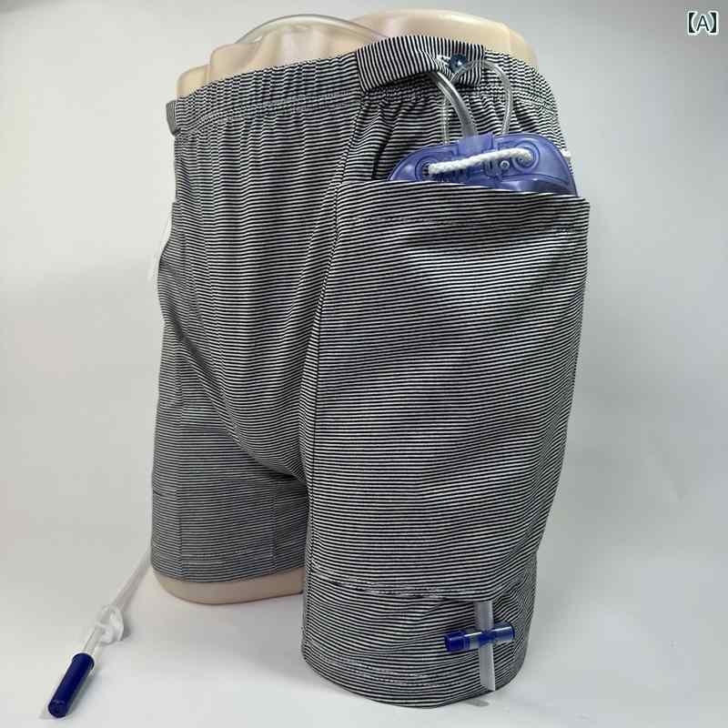 介護パンツ 男性 通気性 柔らかい シンプル 便利 下着 腸管 ストーマ 胆嚢 手術 ドレナージ バッグ ポケット シニア 旅行 ストライプ 伸縮性 黒 グレー 青