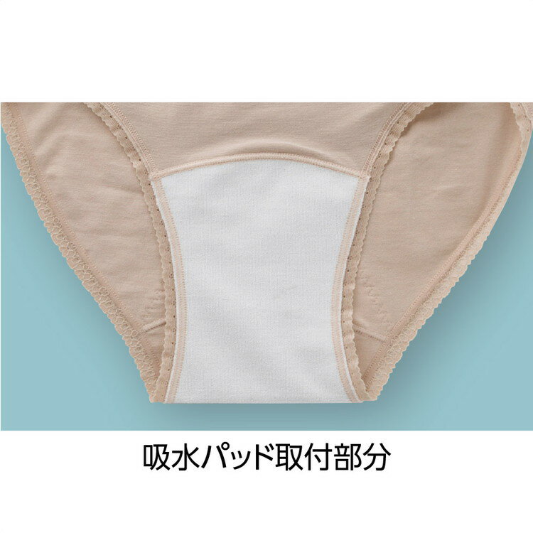 ●サイズ/(総丈)M:28cm、L:30cm、LL:32cm●適応サイズ目安/(対応ウエスト)M:64〜70cm・L:69〜77cm・LL:77〜85cm、(対応ヒップ)M:87〜95cm・L:92〜100cm・LL:97〜105cm●素材/本体:綿65%・ナイロン30%・ポリウレタン5%、レース部:ナイロン・ポリウレタン、(シート部)生地:ポリエステル100%、ラミネート:ポリウレタン、FTY天竺●生産国/日本●洗濯機可●婦人用・機能性に優れた安心のショーツ。・制菌・防臭に優れた快適・自然なはき心地。・吸水パッド約25cmまで対応!・ふとした漏れも安心。・市販の吸水パッドにしっかりフィット。・透湿性に優れているからムレにくい。・長さ25cmまでなら、状況に応じて吸水量の異なる吸水パッドをご使用できます。※市販の吸水パッドをショーツに取り付けてご使用ください。【ケアファッション】