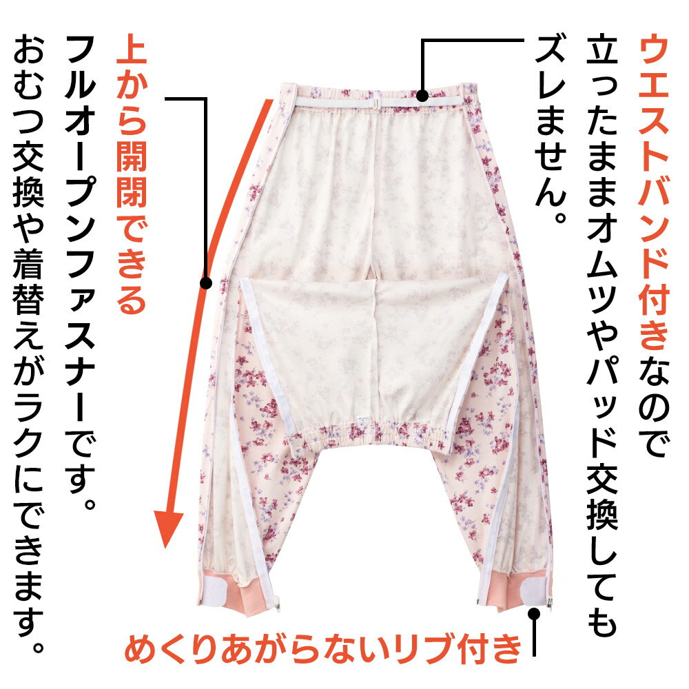 Item Information 両脇ファスナーで着替えしやすい ★フルオープンパジャマ(婦人) カラー:ピンク/ブルー 対応サイズ 【S】バスト72-80cm・ウエスト58-64cm・ヒップ82-90cm 【M】バスト79-87cm・ウエスト64-70cm・ヒップ87-95cm 【L】バスト86-94cm・ウエスト69-77cm・ヒップ92-100cm 【LL】バスト93-101cm・ウエスト77-85cm・ヒップ97-105cm 平置きサイズ(cm) 【S】ゆき丈約70・バスト約96・着丈約66・パンツ総丈約87・股下約57 【M】ゆき丈約73・バスト約108・着丈約68・パンツ総丈約90・股下約59 【L】ゆき丈約76・バスト約114・着丈約70・パンツ総丈約93・股下約61 【LL】ゆき丈約77・バスト約120・着丈約70・パンツ総丈約93・股下約61 綿100% 日本企画中国製 【理学療法士のおすすめポイント!】 ・寝たきりの方の着替えの介助量の軽減につながります。 ・おむつ交換はズボンを下げる必要なく、両脇のファスナーを下げることで前面が開けるので楽にできます。 ・両脇のファスナーを上から下まで開けるため、足が曲がらない方や足を動かすと痛みが生じる方の着替えのストレスを緩和することができます。 ・袖口がファスナーテープで開くため、点滴がスムーズに行えます。袖口が開くため着替えの際手を通しやすいです。 ◆両脇ファスナーで着替えやすさ抜群 ・ゆったり仕立てのトップと両脇ファスナーパンツで着替えやすさ抜群。 ・綿100%にゆったりマチ仕様や足首リブ付きで、着心地にもこだわりました。 【ワンタッチテープ】 ・着替えや検温時の開閉が簡単。飾りボタン付で見た目は普通のパジャマです。 ※接着力維持のため、洗濯の際はワンタッチテープを留めて洗ってください。 【フルオープンファスナー】 ・上から開閉できるフルオープンファスナーです。オムツ交換や着替えがラクにできます。 【ウエストバンド付】 ウエストバンド付きなので立ったままオムツ交換してもズレません。 ※プリント柄は若干変更になる場合もございます。 ※商品画像は出来る限り現物の色味に調整しておりますが、ご覧になっているモニター・PC環境により実際の商品と色味が異なって見える場合がございます。ご了承の上お買い求め下さい。 ※生地の裁ち方により、レースや柄の位置が変わる場合がございます。ご了承の上ご購入をお願い致します。 尚、レースや柄の位置の件についての返品・交換は固くお断りいたします。 sa3306-035-1803(230616-o) 関連ワード せたがや介護 シニアファッション レディース 介護衣料 婦人服 女性 高齢者 洋服 シニア レディース ファッション シニア レディースファッション 祖母 服 60代 70代 80代 90代 介護向けファッション 高齢者向けファッション リハビリ 服 女性 おしゃれ着 高齢者 服 通販 おばあちゃん 服 通販 シニア 服 女性 介護 衣料 老人ホーム 介護施設 女性 シニア パジャマ 高齢者 パジャマ 介護 パジャマ 介護パジャマはじめての方へ最初は1〜2着からお試しください