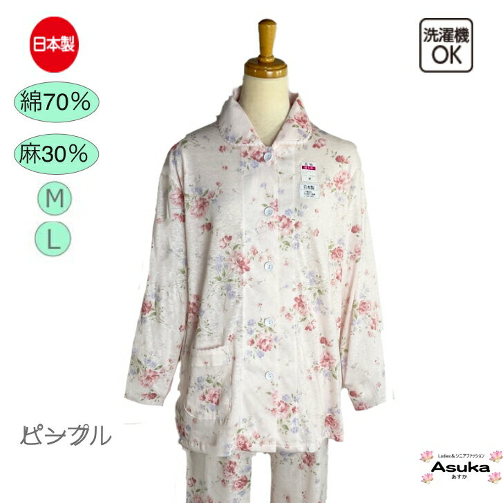 商品名 : \マラソン 10%オフ!/シニアパジャマ レディース 日本製 綿 麻 婦人 襟付き 80代 70代 60代 90代 春夏秋 前あき 上下 ポケット付き 入院 施設 介護 女性 長袖 おばあちゃん プレゼント 誕生日 母の日 敬老の日