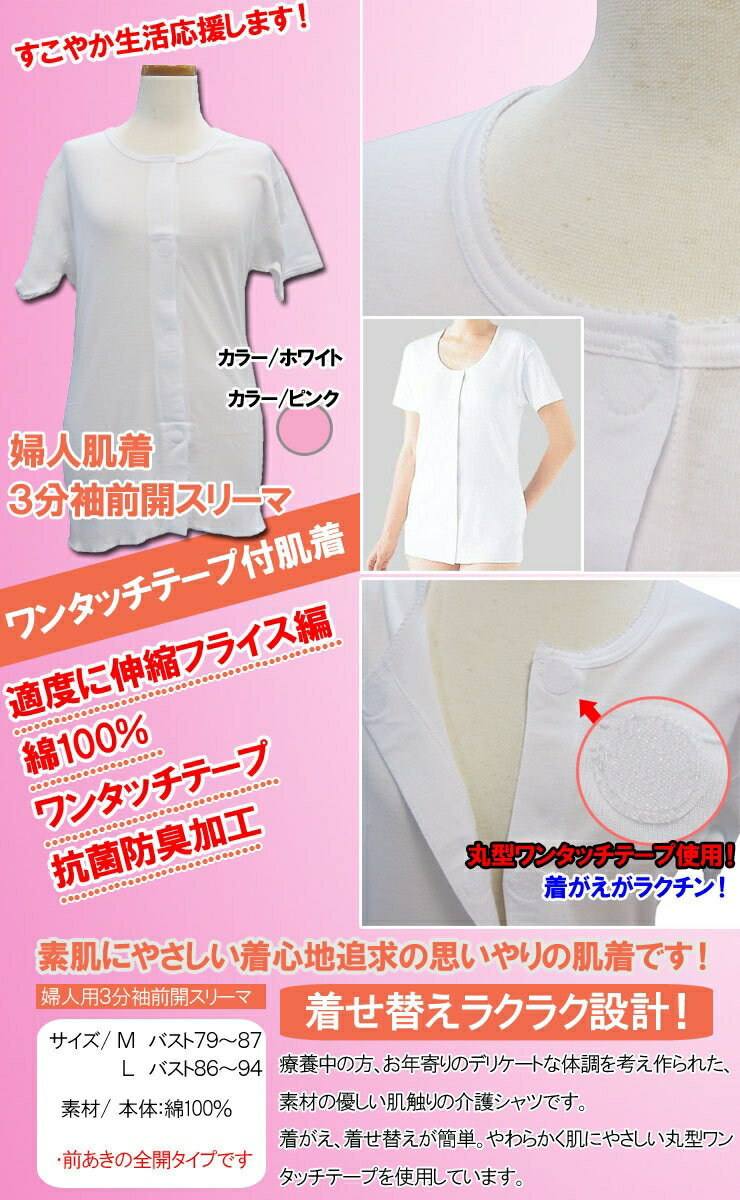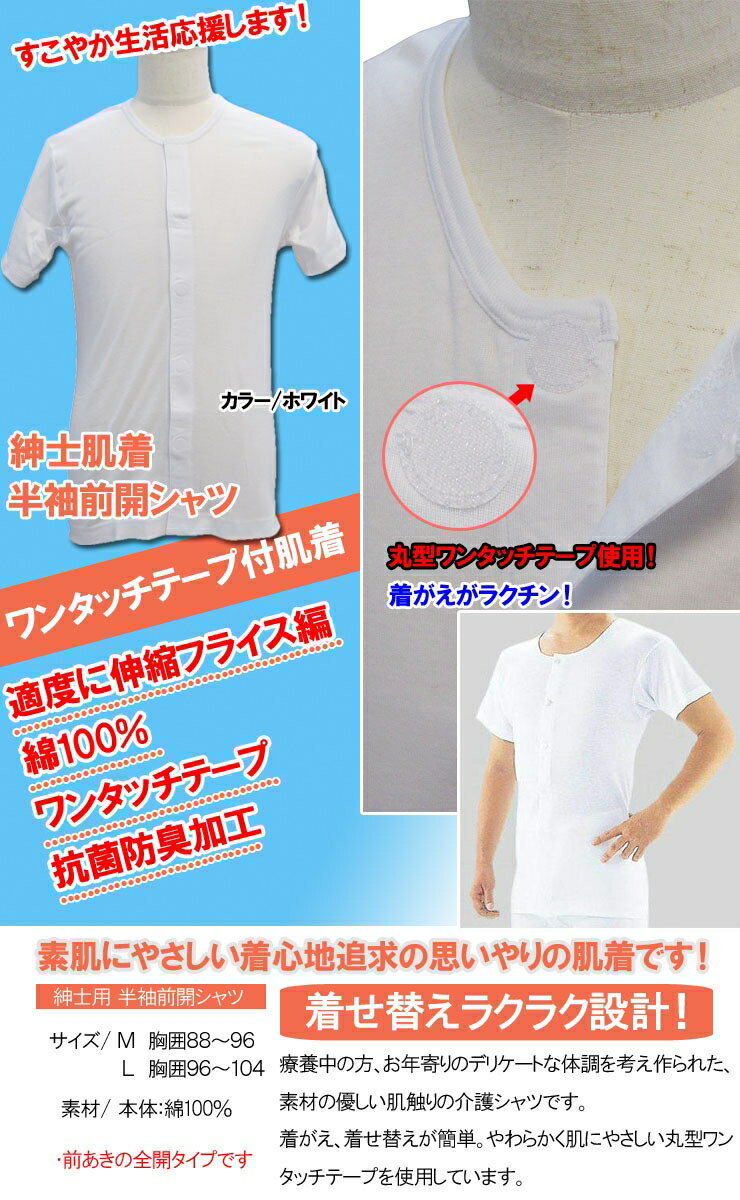 商品名 : 介護衣料 介護用品 シャツ 肌着 下着 インナー 男性 女性 ワンタッチ 入院 通院 リハビリ パジャマ メンズ レディース 前あき 半袖 シャツ (00122)