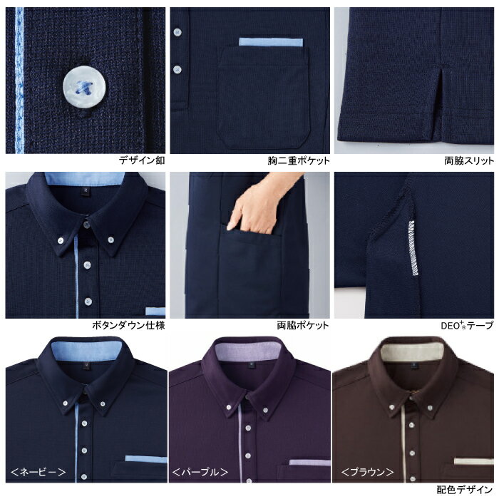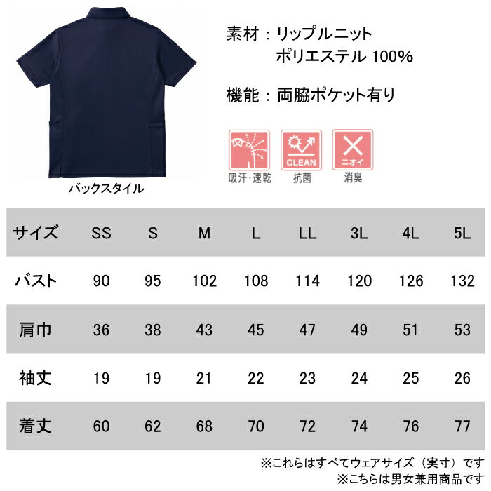 商品名 : ホワイセル スクラブ 白衣 医療 介護 自重堂 WH90918 半袖BDポロシャツ SS-5L 医療白衣・介護ウェア 作業着 メンズ ワークウェア jichodo かっこいい