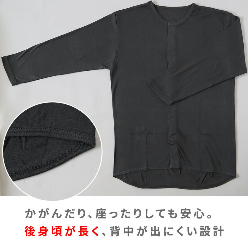 商品名 : ワンタッチ 介護 前開き インナー マジックテープ メンズ M〜LL 8分袖 前あき 入院 寝巻き 介護シャツ あったか 暖かい 発熱 吸湿発熱 ブラック m l ll