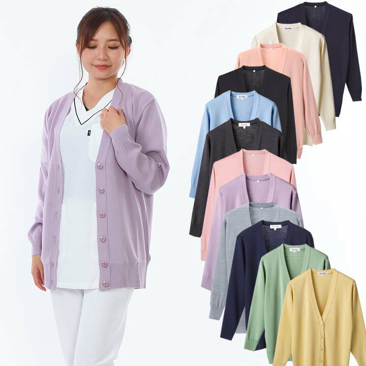 商品名 : カーディガン 日本製 長袖カーデガン D-1002事務 医療 カジュアル 白衣カーデガン 事務カーデガン ロング丈 ニットカーデガン 家庭洗濯可能 静電気防止 毛玉防止 ディーフェイズ ナース シンプルデザイン ピンク