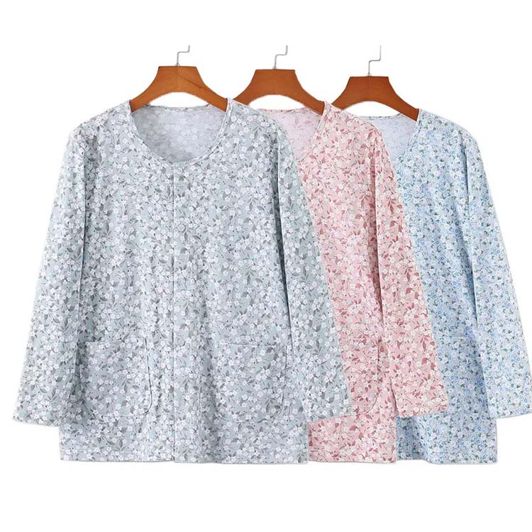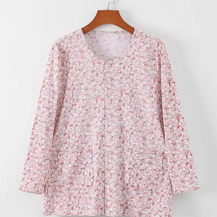 商品名 : 花柄 介護 下着 前開き 女性用 長袖/半袖選べる 快適 介護用 トップス インナーシャツ ルームウェア 下着 肌着 レディース 入院 手術 部屋着 半袖 男性用 シャツ XL 2XL 3XL 4XL 5XL