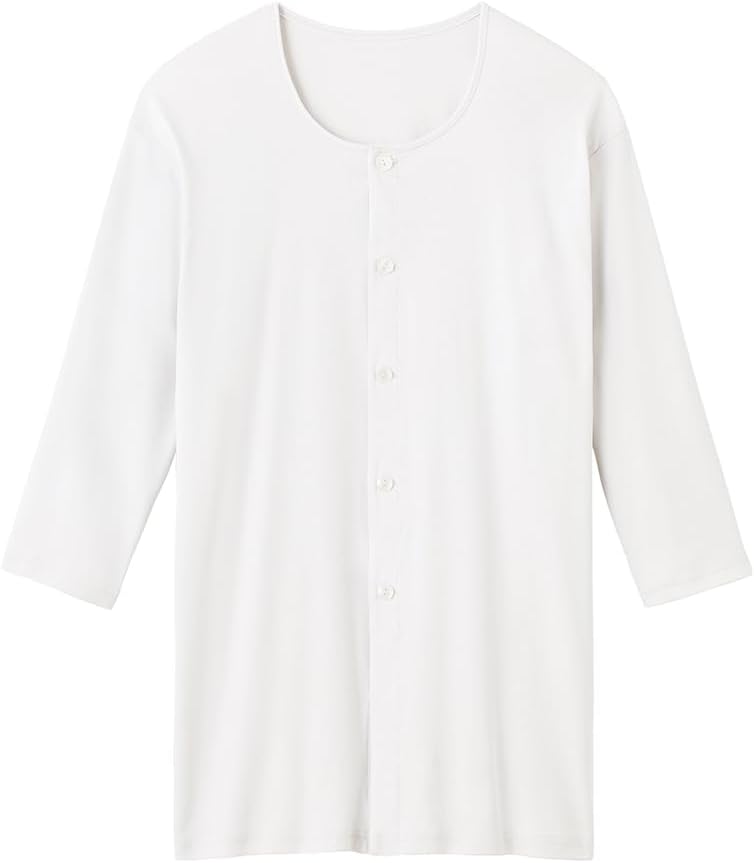 商品名 : 【綿100%】【7分袖ボタン付きシャツ】【介護肌着】HWB218 HW6218(旧) グンゼ 着替えらくらく肌着 紳士用釦付き七分袖シャツ 前あき 入院 通院 サイズM/L 高齢者 シニア 介護 リハビリ入院 抗菌防臭 保湿 病院