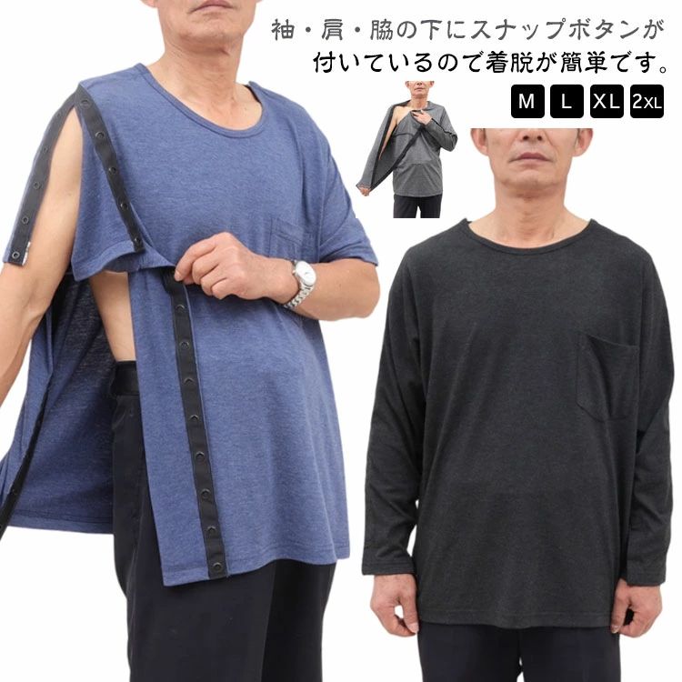 介護用品 メンズ 介護服 tシャツ シニア 半袖 長袖 全開タイプ 入院服 通院用 術後ウエア 骨折 敬老の日 男性用 父の日 大きサイズ 春夏