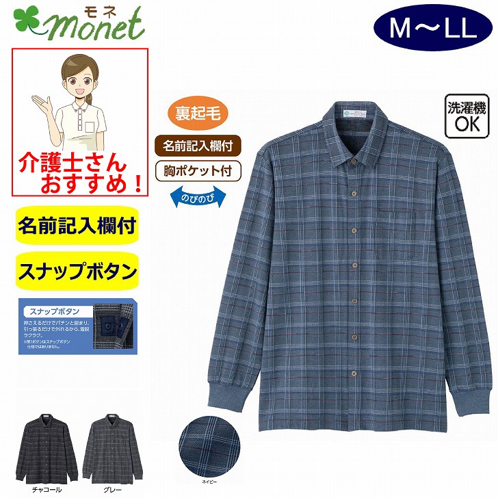 介護 介護用品 介護用 高齢者向け 高齢者 介護用寝具 介護寝具 介護服 介護衣料品 介護洋服 介護寝具 おしゃれ オシャレ介護 メンズアパレル 紳士 男 男性 トップス シャツ 着やすい 脱ぎやすい ブラック グレー 父の日 父 プレゼント ワンタッチテープ起毛シャツ