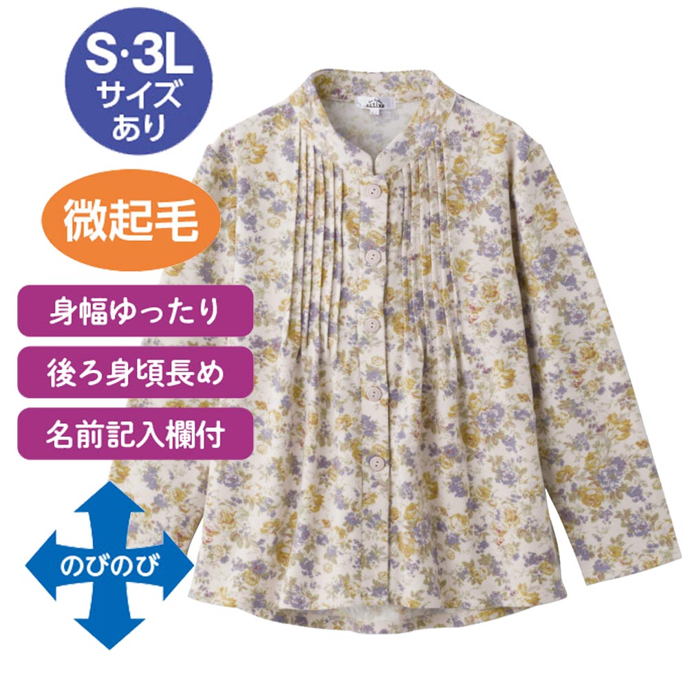 商品名 : 乾燥機対応 ふんわり微起毛斜め釦ホールピンタックブラウス(婦人) 乾燥機OK シニア レディース ファッション 高齢者 婦人服 長袖 起毛 トップス シニアファッション 花柄 秋物 冬物 秋冬 後ろ長め 小さいサイズ プレゼント 入院 入所 介護
