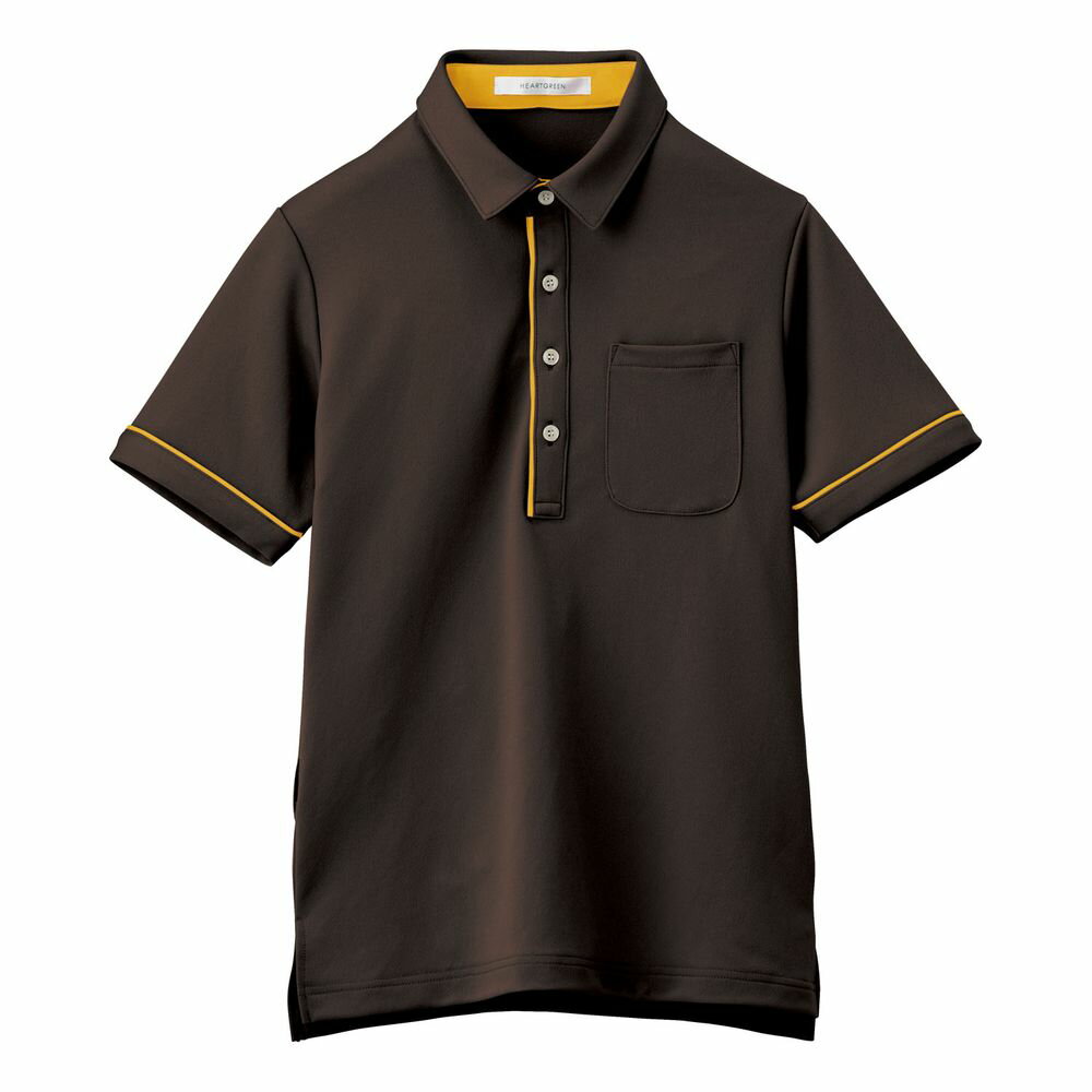 半袖ロングポロシャツ 男女兼用 HSP004-3 アースブラウン 介護ユニフォーム 25-2429-01 カーシーカシマ