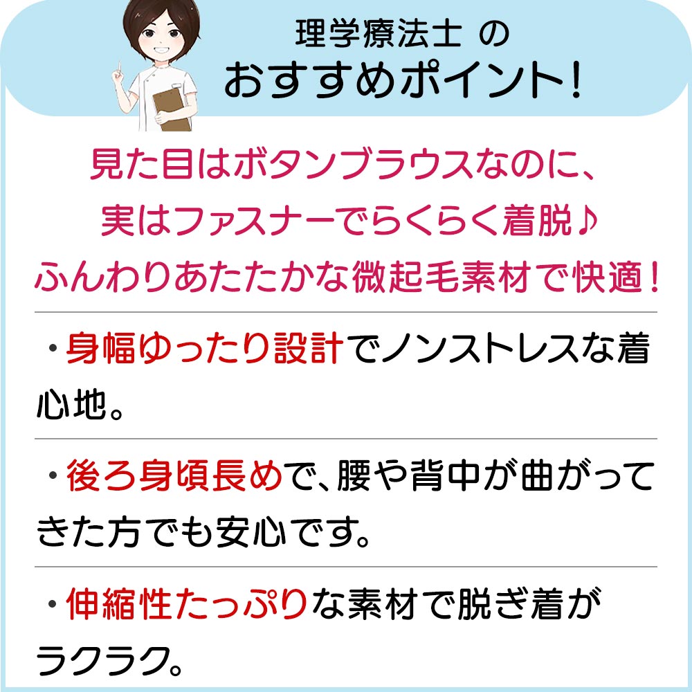 商品名 : 乾燥機対応 ふんわり微起毛隠れファスナーブラウス 乾燥機OK シニア レディース ファッション 高齢者 婦人服 長袖 トップス シニアファッション 花柄 秋物 冬物 秋冬 後ろ長め 袖口ゴム 小さいサイズ 大きいサイズ プレゼント 入院 入所 介護