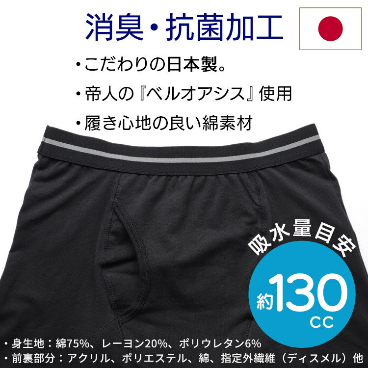 商品名 : シニア メンズ 尿漏れパンツ 130cc吸水 男性用 大きいサイズ 失禁ボクサーパンツ メンズ M L LL 3L 4L 5Lサイズ 綿混 ブラック ライトグレー 黒 プレゼント 入院 入所 介護