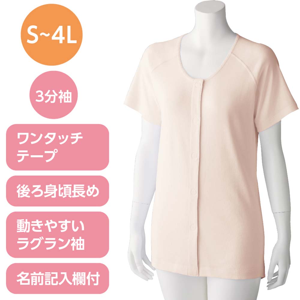 商品名 : シニア レディース 2枚組 3分袖ワンタッチシャツ S M L LL 3L 4Lサイズ 後ろ長め肌着 婦人下着 ラグラン シャツ 婦人用 高齢者 70代 80代 90代 施設 入居準備 介護用品 大きいサイズ インナー コットン100% 綿100肌着 婦人肌着 プレゼント 入院 入所