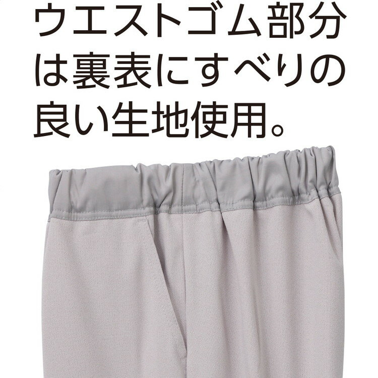●適応サイズ目安/(対応ウエスト)S:58〜64cm・M:64〜70cm・L:69〜77cm・LL:77〜85cm・3L:85〜93cm、(対応ヒップ)S:82〜90cm・M:87〜95cm・L:92〜100cm・LL:97〜105cm・3L:102〜110cm●素材/ポリエステル95%、ポリウレタン5%●生産国/中国●洗濯機可●のびのび素材●ゴムの取替え可能●両脇ポケット付き●名前記入欄付き●婦人用 ・おしりに引っかかりにくくひとりでもはきやすい!・ウエストゴム部分には表裏ともにすべる生地を使用。さらにウエストゴムは大きめ設計なので、巻きこまず、はきやすい点が魅力!・前2か所にすべり止め付きでずり落ち防止!はく時は邪魔にならず、片手でもはきやすい。・おしりに引っ掛かりにくく引き上げやすい。・ゆったりめのウエストゴムで、引き上げやすい。・トイレで座ってもズボンが下までずり落ちにくい。・ウエスト周りにすべりの良い生地使用。ウエストゴム部分が表裏ともにすべりの良い生地なので、巻き込まずにひとりではきやすい。・ウエストのゴムを大きめに設定しているので、手の力が弱くても引きあげやすい。・ゴム取替え口でウエスト調節可能。自分にあった強さのゴムに取替えできます。・動きやすくてラクなはき心地!おうちからご近所まで。・サラッとしたやわらかな肌ざわりで、暑い時期にも最適!・裾スリット入り。・ウエストゴム部分は裏表にすべりの良い生地使用。・名前記入欄付きで間違い防止。施設での洗濯後も間違いを防止できます。 【ケアファッション】