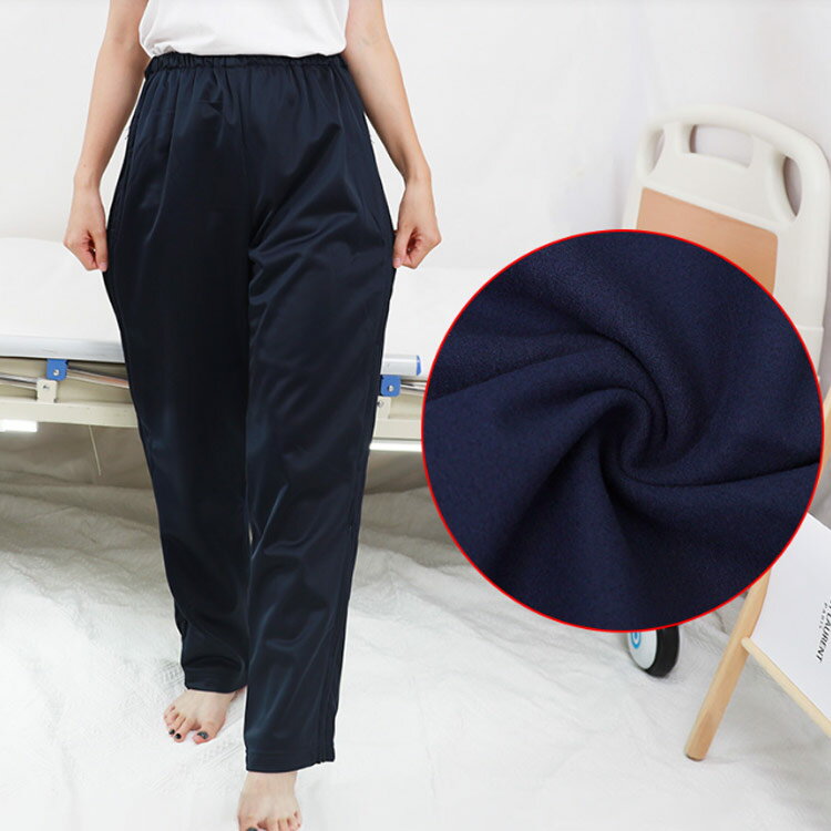 入院中に不便な行動をとる人向けにデザインの入院用ズボン。オールシーズン対応の2タイプ生地ですので、四季を選ばず着用可能です。側面が簡単に開くので、恥ずかしい瞬間を避け、緊急事態にも簡単に対処。部分的に開閉するためのダブルファスナーなので、要介助者に安心です。両脇腰の部分から裾口までファスナーが付き、脱ぎ履きが簡単です。 締め付けすぎないウエストゴムで、履き心地も抜群です。洗い替えや、術後の着用、室内での着用に便利です。 サイズM L XL 2XLサイズについての説明M L XL 2XL ※サイズ表の実寸法は商品によって1-3cm程度の誤差がある場合がございます。素材ポリエステル色裏ボア(秋冬用) 裏ボア無し(春夏用)備考 ●サイズ詳細等の測り方はスタッフ間で統一、徹底はしておりますが、実寸は商品によって若干の誤差(1cm〜3cm )がある場合がございますので、予めご了承ください。 ●商品の色は、撮影時の光や、お客様のモニターの色具合などにより、実際の商品と異なる場合がございます。あらかじめ、ご了承ください。●製品によっては、生地の特性上、洗濯時に縮む場合がございますので洗濯時はご注意下さいませ。▼色味の強い製品によっては他の衣類などに色移りする場合もございますので、速やかに(脱水、乾燥等)するようにお願いいたします。 ▼生地によっては摩擦や汗、雨などで濡れた時は、他の製品に移染する恐れがございますので、着用の際はご注意下さい。▼生地の特性上、やや匂いが強く感じられるものもございます。数日のご使用や陰干しなどで気になる匂いはほとんど感じられなくなります。
