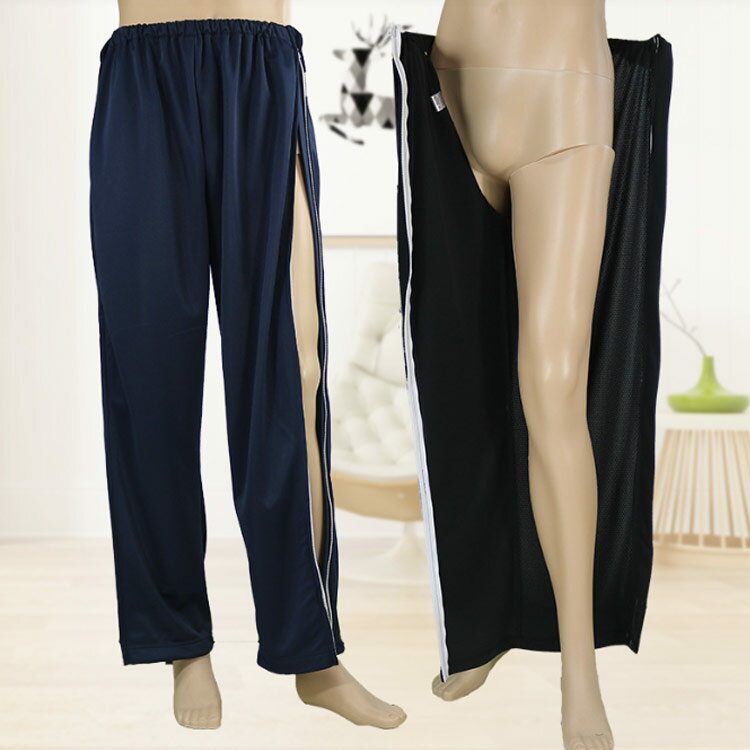 商品名 : ファスナー全開 フルオープン ロングパンツ レディース メンズ 両脇全開 介護ズボン ウエストゴム パンツの着替え 通院 着脱簡単 部屋着 高齢者 男女兼用 入院 オムツ交換 骨折する 術後 送料無料
