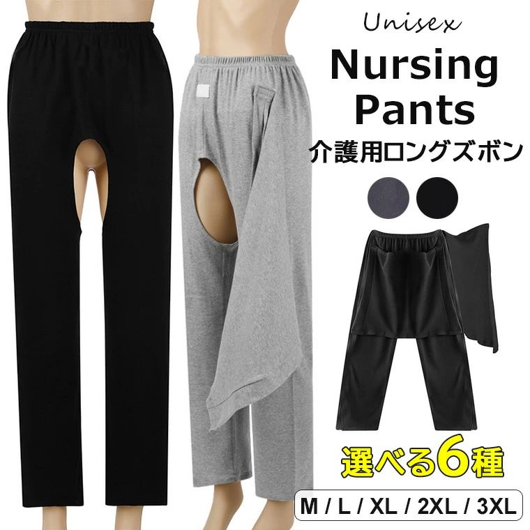 入院ウェア ロング丈 股間が前後に開くので、ベッドケアに便利 患者 介護用 寝たきり 患者用パンツ 骨折 簡単 ズボン 全開 着脱