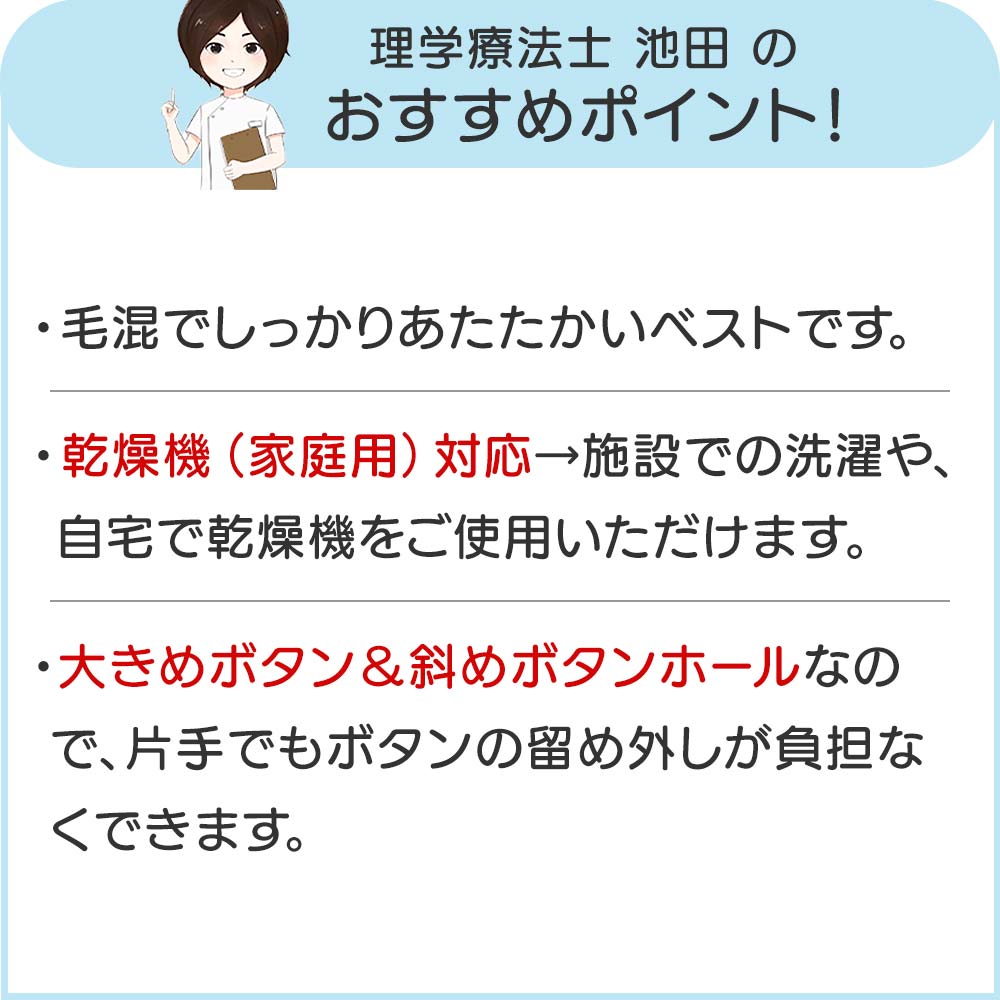 商品名 : 乾燥機対応 シニア レディース 秋冬 あったか毛混斜め釦ホールニットベスト M-L LLサイズ 婦人服 大きいサイズ トップス 乾燥機 シニアファッション 80代 婦人服 女性服 介護 服 介護 乾燥機 服 介護服 前開き レディース 婦人 プレゼント 入院 入所