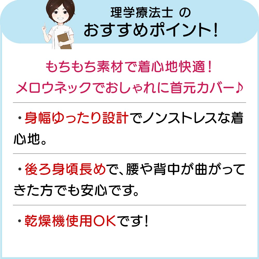 Item Information ★もちもちニットセーター(婦人) カラー:ラベンダー/ローズ/ワカクサ 対応サイズ 【M-L】バスト79-94cm 【LL】バスト93-101cm 仕上げ寸法(cm) 【M-L】肩幅38・袖丈54・バスト94・着丈58/64 【LL】肩幅40・袖丈54・バスト106・着丈62/68 レーヨン50%・ポリエステル30%・ナイロン20% 日本企画中国製 もちもち素材で着心地快適なセーター! メロウネックでおしゃれに首元カバー♪ 乾燥機OKです! 【理学療法士のおススメポイント!】 ・身幅ゆったり設計でノンストレスな着心地。 ・後ろ身頃長めで、腰や背中が曲がってきた方でも安心です。 ・伸縮性のある素材のため、脱ぎ着がラクラク。 ※商品画像は出来る限り現物の色味に調整しておりますが、ご覧になっているモニター・PC環境により実際の商品と色味が異なって見える場合がございます。ご了承の上お買い求め下さい。 sa3616-035-821917(250901-k)はじめての方へ最初は1〜2着からお試しください