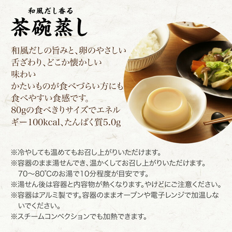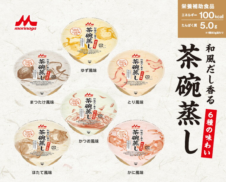商品名 : 介護食 茶碗蒸し 森永 和風だし香る茶碗蒸し 80g×6個セット( かつお風味/かに風味/ほたて風味/とり風味/ゆず風味/まつたけ風味 各種1個入) クリニコ メール便|高齢者 栄養補給 介護 食事サポート やわらか ミキサー食 流動食 栄養補助 ハイカロリー アソート お試し