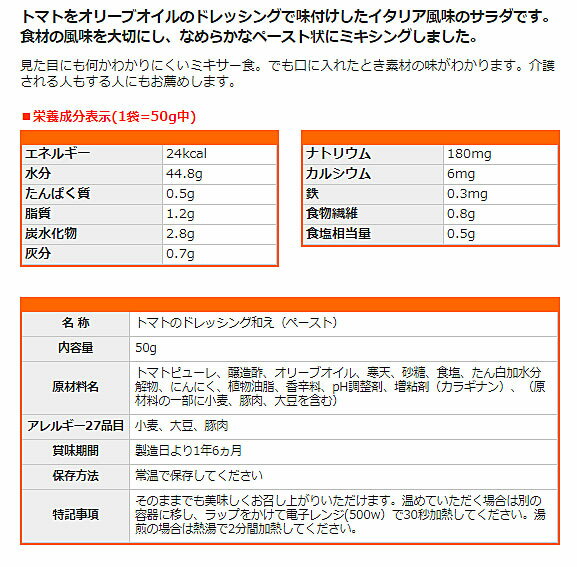 商品名 : 介護食 ミキサー食 ホリカフーズ 区分4 おいしくミキサー トマトのサラダ 567790 50g (もう一品シリーズ) (区分4 かまなくて良い) 介護用品