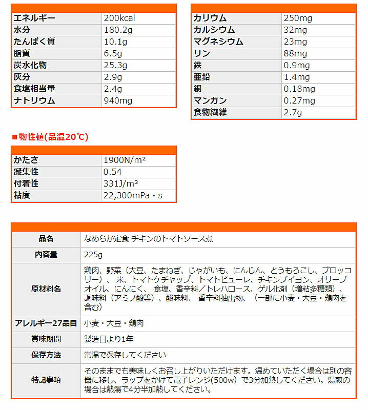 商品名 : 介護食 ホリカフーズ 区分4 なめらか定食 チキンのトマトソース煮 225g (区分4・かまなくてよい) 介護用品