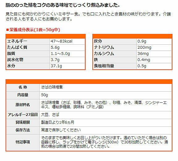 商品名 : ホリカフーズ 介護食 区分4 おいしくミキサー 鯖の味噌煮 567700 50g (メインのおかず) (区分4 かまなくて良い) 介護用品