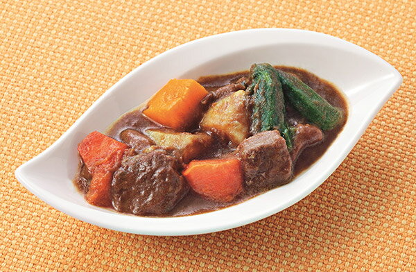 【UDF区分/舌でつぶせる】 たっぷり入った野菜の甘みとカレーソースの調和を楽しむ、味わい豊かなビーフカレーです。 「あいーと」は、かむ力が低下した方でもおいしく味わえる新しい食事です。 見た目は普通の食事。ふわっと舌でくずれ、調理も簡単。介護の負担を減らします。 このような方におすすめです! ・噛む力が弱まり、硬いものが食べられない ・ミキサー食やペースト食、キザミ食では満足してくれない ・食事を残す量が増え、低栄養が心配 ・毎日の献立づくりや調理に悩んでいる ・手術後のやわらかい食事をつくる手間を省きたい JANコード:4987785006846「あいーと」の5つの特徴 1、酵素均浸法による驚きのやわらかさ 酵素均浸法などの独自技術により、レンコンなどの硬い野菜や肉・魚も、常食に比べ硬さ1/100~1/1000という舌でくずせる程の驚きのやわらかさを実現しました。 2、見た目そのままだから食べたくなる 再形成食ではなく、食材そのものの繊維を酵素の力で軟化加工。そのため見た目は常食と変わらず、おいしさを目でも存分に味わっていただけます。また、誕生日・お祝い事・行事食・贈り物としても喜ばれています。 3、もう一度食べたい味を追求 懐かしい味、本格的な味、食材本来の味のこだわり、もう一度食べたいと思っていただけるメニューを展開しています。 4、冷凍だから長期保存が可能 あいーとは、急速冷凍でおいしさを閉じ込めた冷凍食品です。もちろん長期保存が可能。食べたいときや急に必要になったときなど、いつでも食べることができます。常備しておくのもオススメです 5、温めるだけで食べられる あいーとは、調理済みの冷凍食品です。どの商品にもタレや出し汁が入っているので、温めるだけですぐに食べることができます。また電子レンジや蒸し器などで温めるだけなので、調理に不安がある方でも簡単に温めることができます。 商品情報 商品名 【冷凍】介護食あいーと たっぷり野菜のビーフカレー 内容量 129g メーカー イーエヌ大塚製薬株式会社 保存方法 冷凍食品のため、-18℃以下で保存してください。 賞味期限保証 1ヶ月以上 原材料 カレーソース(小麦粉、食用油脂(牛脂、豚脂)、その他)(国内製造)、ばれいしょ、牛肉、にんじん、オクラ、かぼちゃ、つゆ、砂糖/増粘剤(加工でんぷん、キサンタン)、着色料(カラメル)、調味料(アミノ酸等)、トレハロース、pH調整剤、酵素、酸味料、酸化防止剤(V.C、フェルラ酸)、香料、(一部に小麦・乳成分・牛肉・大豆・豚肉・りんごを含む) 商品区分 食品 JANコード 4987785006846 広告文責 三嶋商事株式会社フリーダイヤル 0120-244-168 ※お客様のための連絡先です。営業電話はご遠慮下さい。 栄養成分表示 1袋(129g)あたり 成分 含量 成分 含量 エネルギー(kcal) 97 水分 (g) 107.2 たんぱく質 (g) 4.3 脂質 (g) 3.2 炭水化物 (g) 12.5 食塩相当量 (g) 1.6 カリウム(mg) 168 リン (mg) 55 アレルギー情報 盛り付けイメージ <<たっぷり野菜のビーフカレー>> あいーとは冷凍食品です。 温めてお召し上がりください。 温め時間の目安 蒸し器 20分 スチームコンベクション スチーム 100% 80℃ 30分 電子レンジ 弱(200w) 6分 ※電子レンジに 弱(200W)がない場合は 「解凍」「生もの解凍」 「ゆっくり加熱」で温めてください