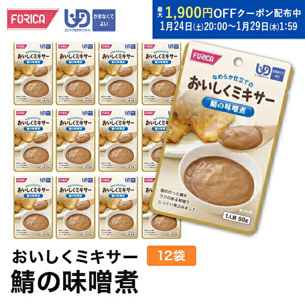 おいしくミキサー鯖の味噌煮(12袋入り) 介護食 ペースト セット ホリカフーズ ユニバーサルデザインフード 区分4 かまなくてよい ミキサー食 レトルト やわらか食 介護食品 手軽 流動食 福祉 高齢者 お年寄り