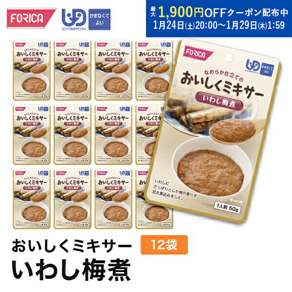 おいしくミキサーいわし梅煮(12袋入り) 介護食 ペースト セット ホリカフーズ ユニバーサルデザインフード 区分4 かまなくてよい ミキサー食 レトルト やわらか食 介護食品 手軽 流動食 福祉 高齢者 お年寄り