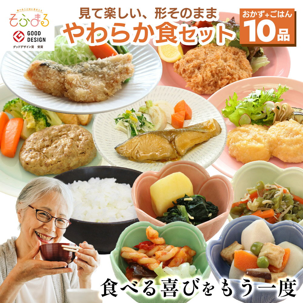 送料無料 やわらか食10品セット 介護食 やわらか食 介護食 やわらか 冷凍 冷凍食品 柔らかい 介護食品 やわらか食品 食べやすい おいしい おかず 惣菜 食事 食品 刻み食 セット商品 簡単調理 レンジ調理 高齢者 歯ぐきでつぶせる 容易にかめる そふまる