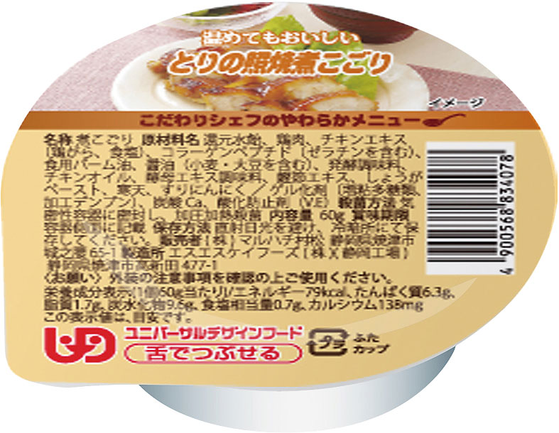 介護食 やわらか食 煮こごり こだわりシェフのやわらかメニュー とりの照焼煮こごり 60g×6個入り マルハチ村松 │ おかず 高齢者 お年寄り 老人 シニア やわらかい 食事介助 舌でつぶせる 区分3 ゼリー カップ 鶏の照焼き 調理済み 便利 時短 在宅介護 病院 老人ホーム