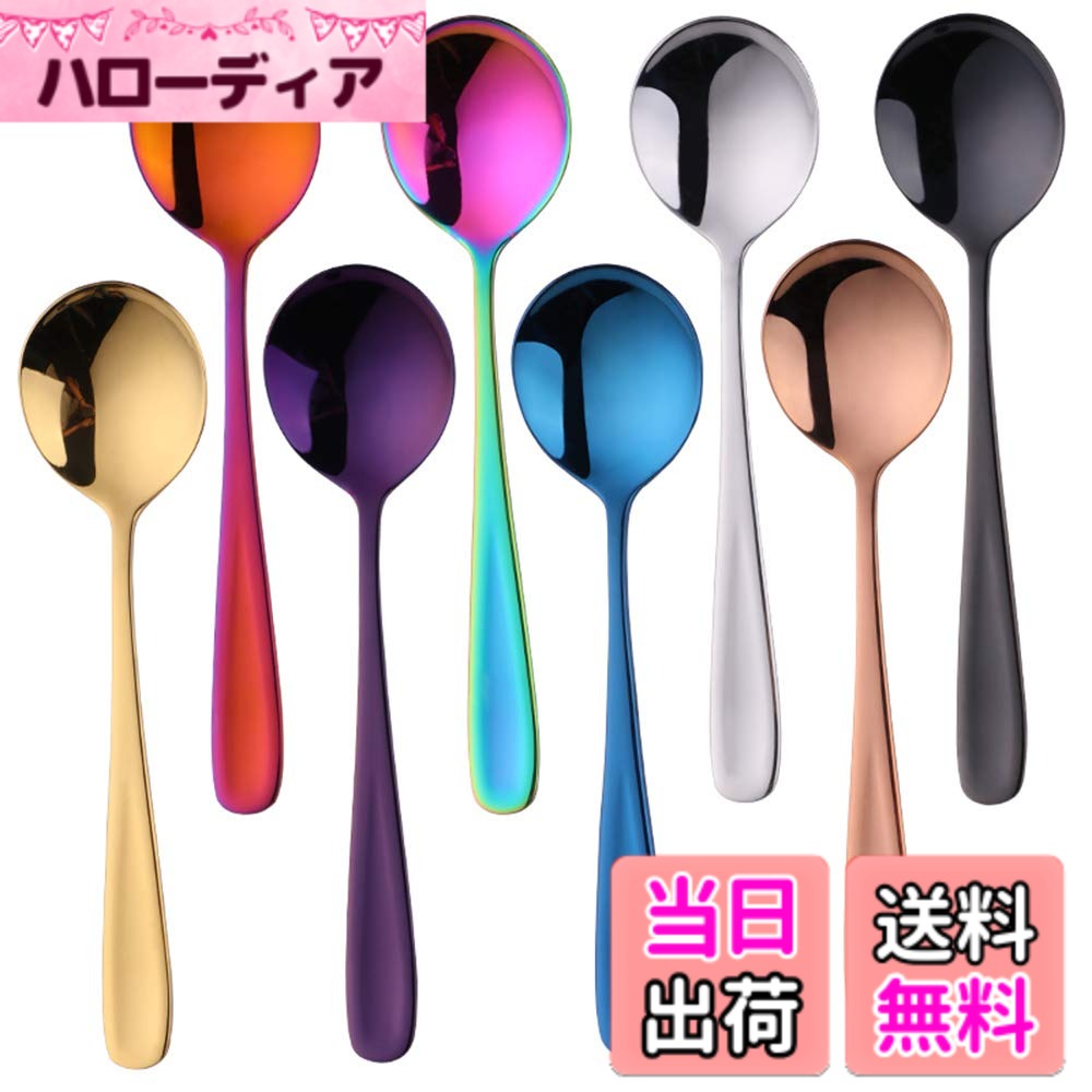 Bisdaカレースプーン スープスプーン ディナースプーン 8色 8本セット オシャレ 18-10ステンレス製 スープ カレー 炒飯 ビビンバ等に適用