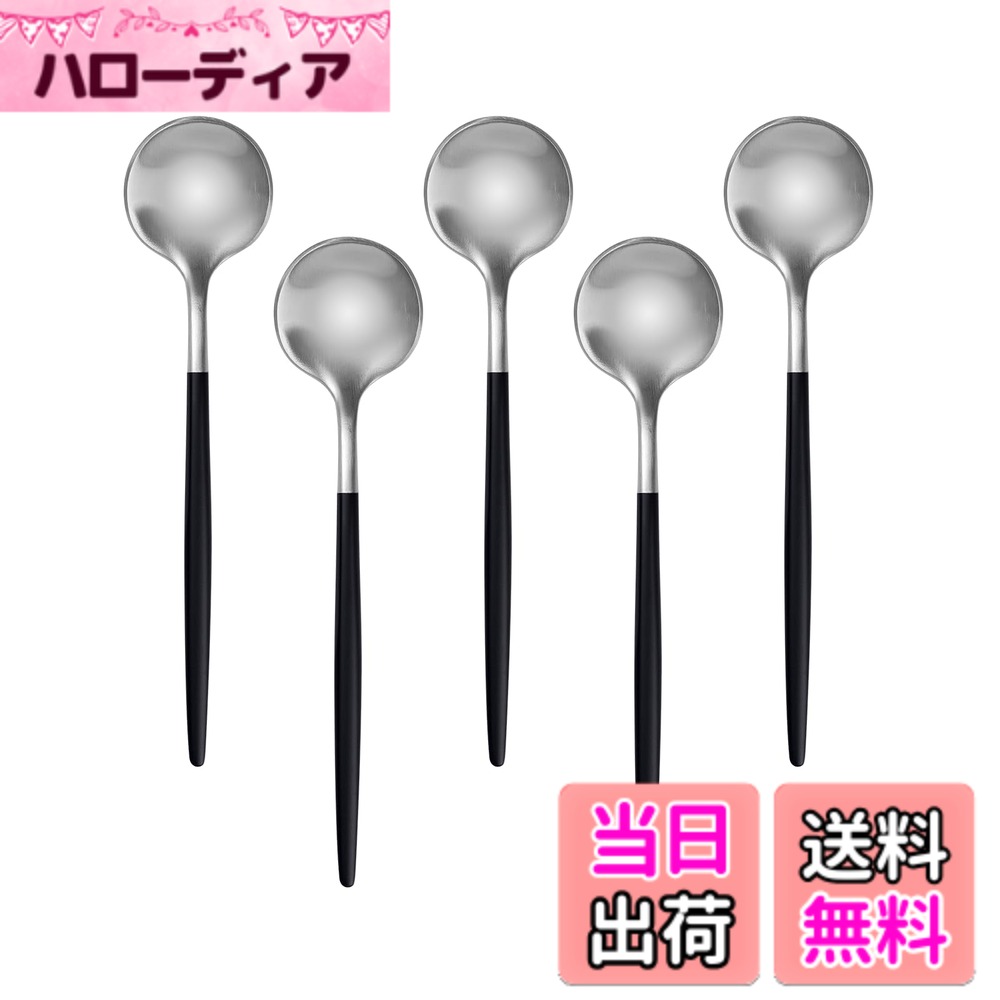 Easytoti コーヒースプーン ティースプーン 5本セット 13cm おしゃれ 可愛いスプーン 18-8ステンレス鋼製 つや消し コーヒー ティー デザート アイスクリーム等に適用 多色有り (シルバー/ブラック)………